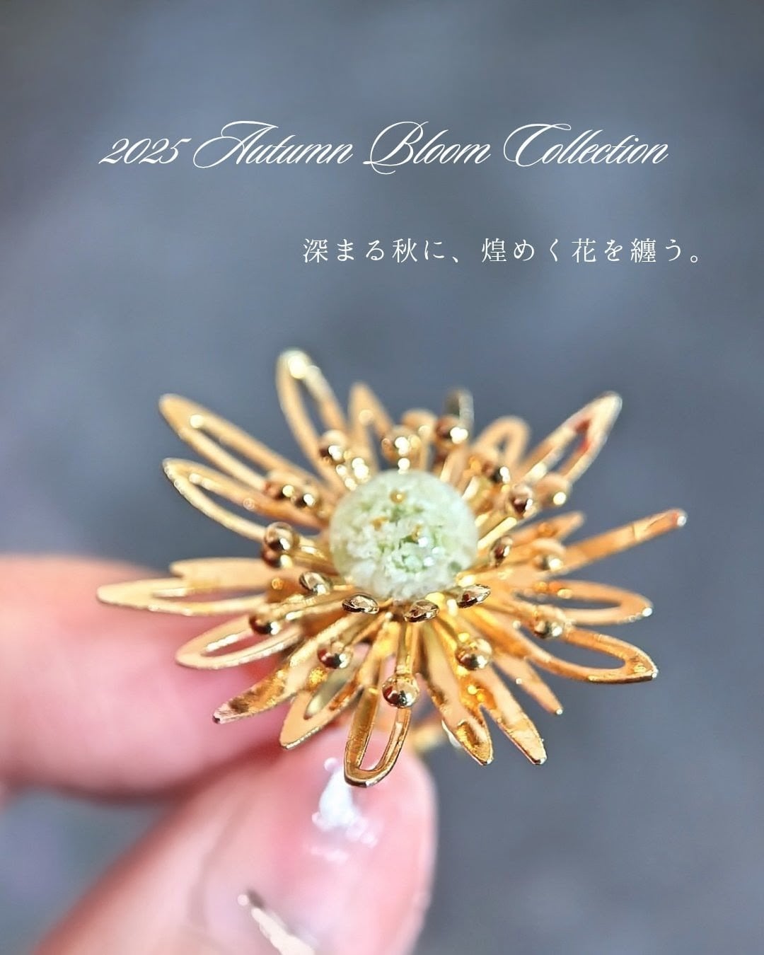 【Twinkle Blossom】【星降る夜】Ver. ━━━━━━━━━━━━━━━━━━━━ 耳元でまるで星が咲いたように、 2種類のお花を閉じ込めました。 秋冬のニットやコートにも映え、 華やかな装いへと彩ります。 輝く星のようなアクセサリー。 ご自分へのご褒美、 大切な方への感謝の気持ちを込めて、 プレゼントにもオススメです。 ※6枚目は作品の裏側です。 【左側イヤリング】⇨ネジバネ式。 痛くなりにくいようにシリコンカバーを装着。 一つ一つゴールドパウダーで綺麗に見えるようにコーティング済み。 【右側ピアス】⇨下向き防止キャッチをお付けします。 ━━━━━━━━━━━━━━━━━━━━ 【ホワイト】Ver.はこちら ⇨https://cauliflower.official.ec/items/117856677 ━━━━━━━━━━━━━━━━━━━━ 【ピアス/イヤリング サイズ】 縦約3.0cm 横3.0cm 【金具に関して】 ピアス:ニッケルフリーピアス イヤリング:ニッケルフリーネジバネ式イヤリング ━━━━━━━━━━━━━━━━━━━━ ※こちらは【受注制作】となります。ご注文いただいてから一つ一つ丁寧に制作する為、発送までに1週間ほどお時間をいただきます。 ━━━━━━━━━━━━━━━━━━━━ ※お写真は代表のものです。 同じように制作致しますが、 自然のお花を使用し、一つ一つ手作業でお作りしているため、完全に全く同じお花の形状、 配置、色味でない、唯一無二の作品になることを ご理解いただきご購入をよろしくお願い申し上げます。