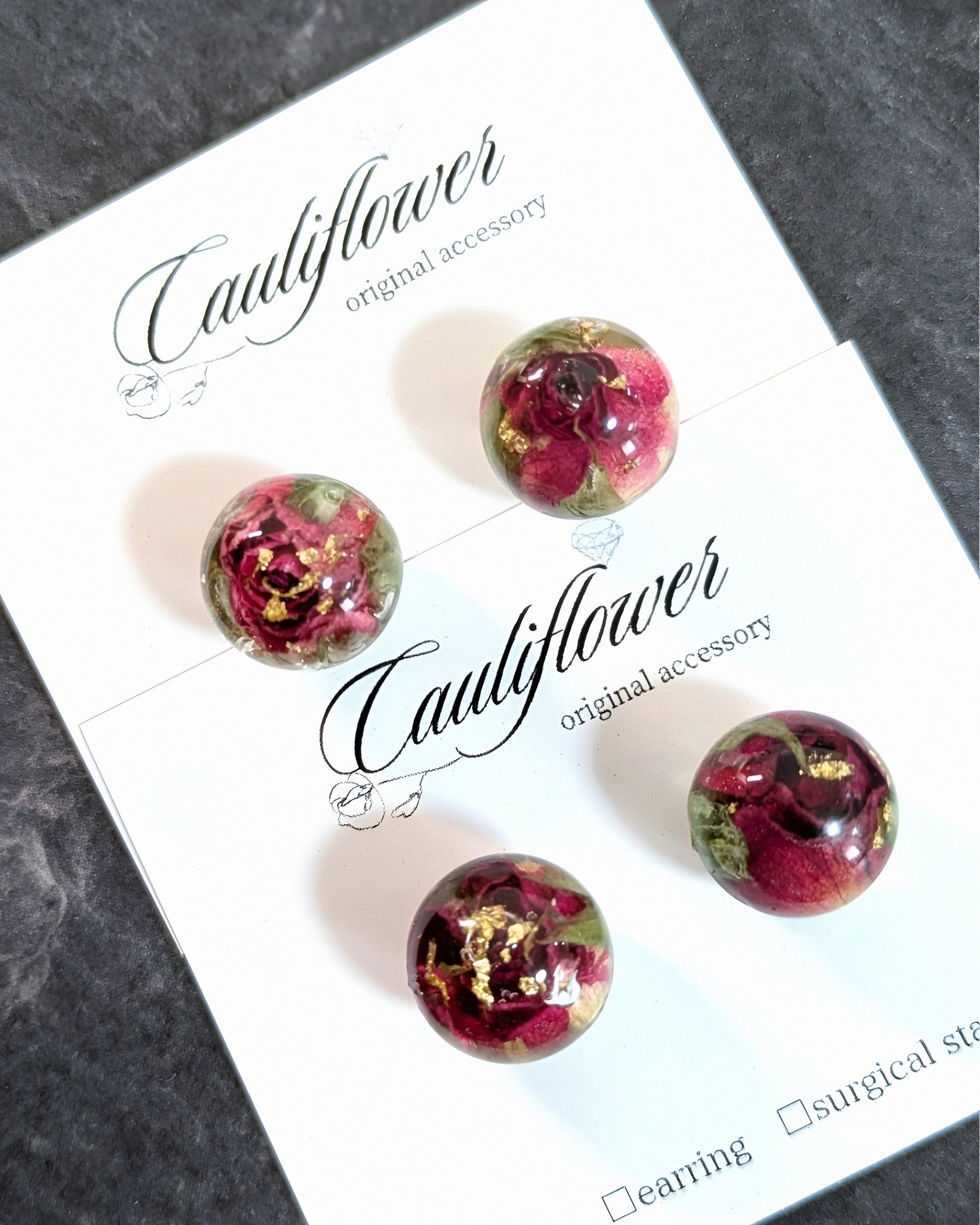 【再販】【ピンクレッド】【Rose】薔薇の一粒耳飾り