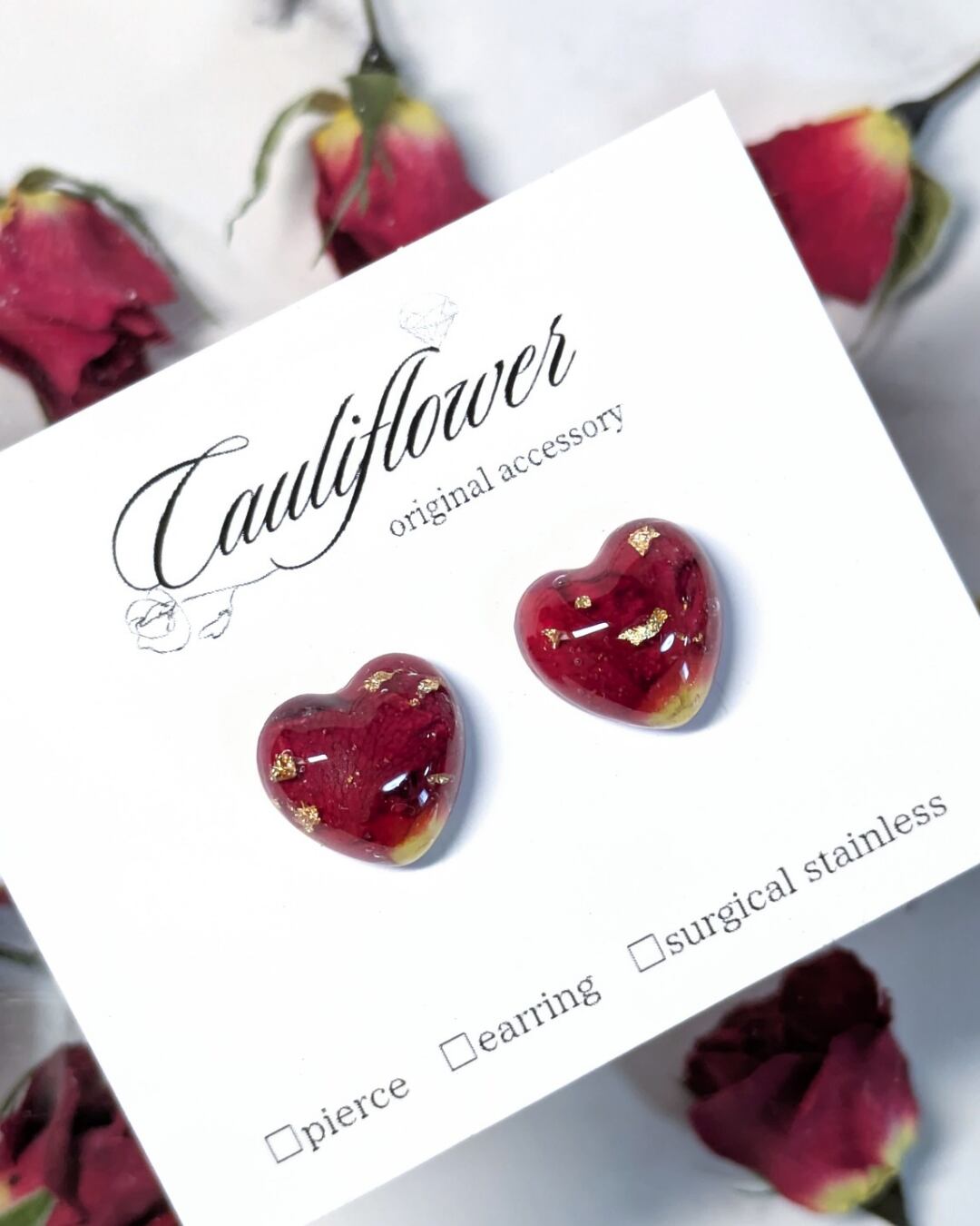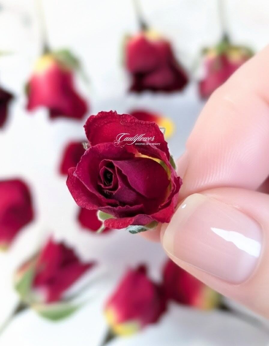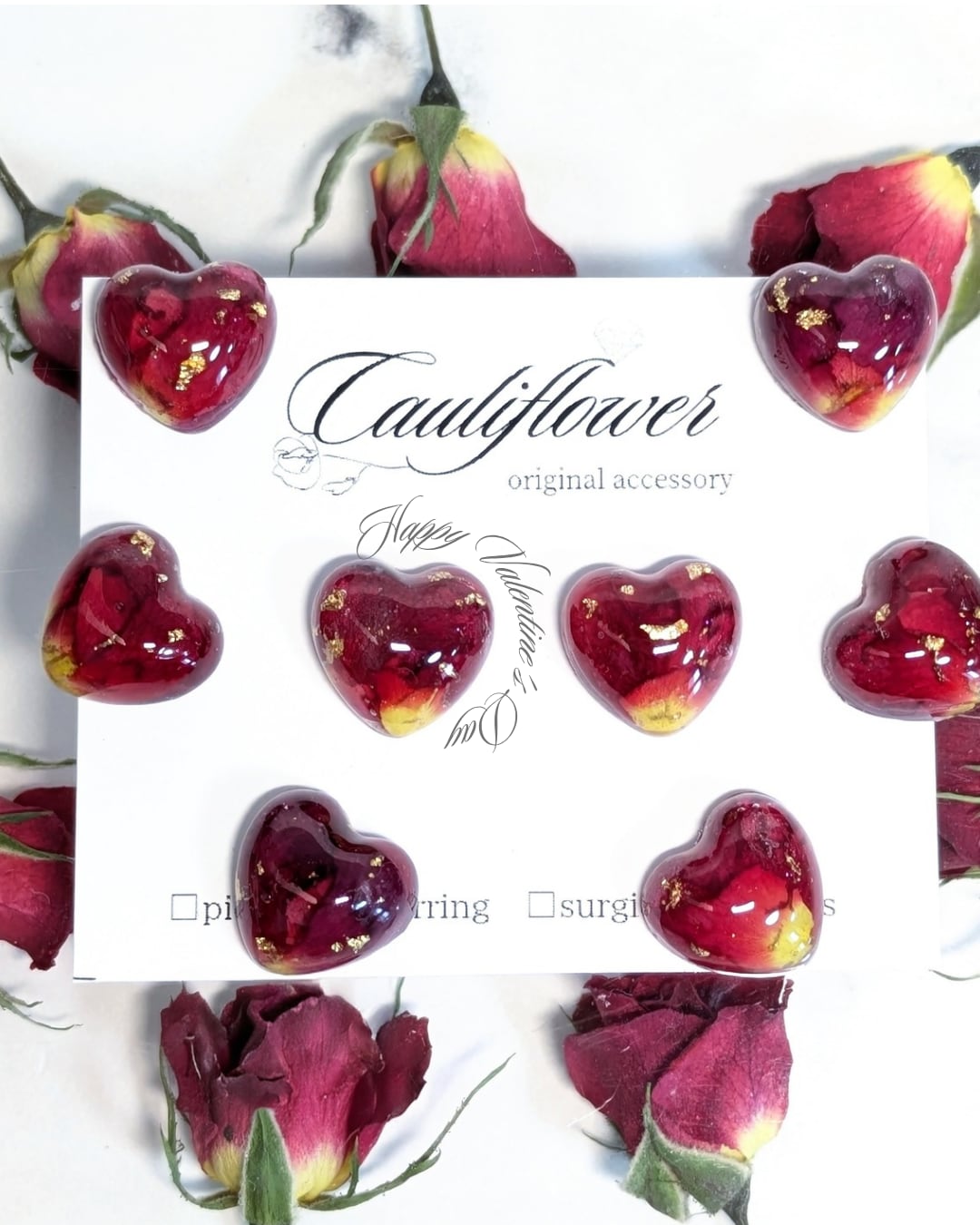 自然のお花を使用し、一つ一つ手作業でお作りしているため、完全に全く同じお花の形状、
